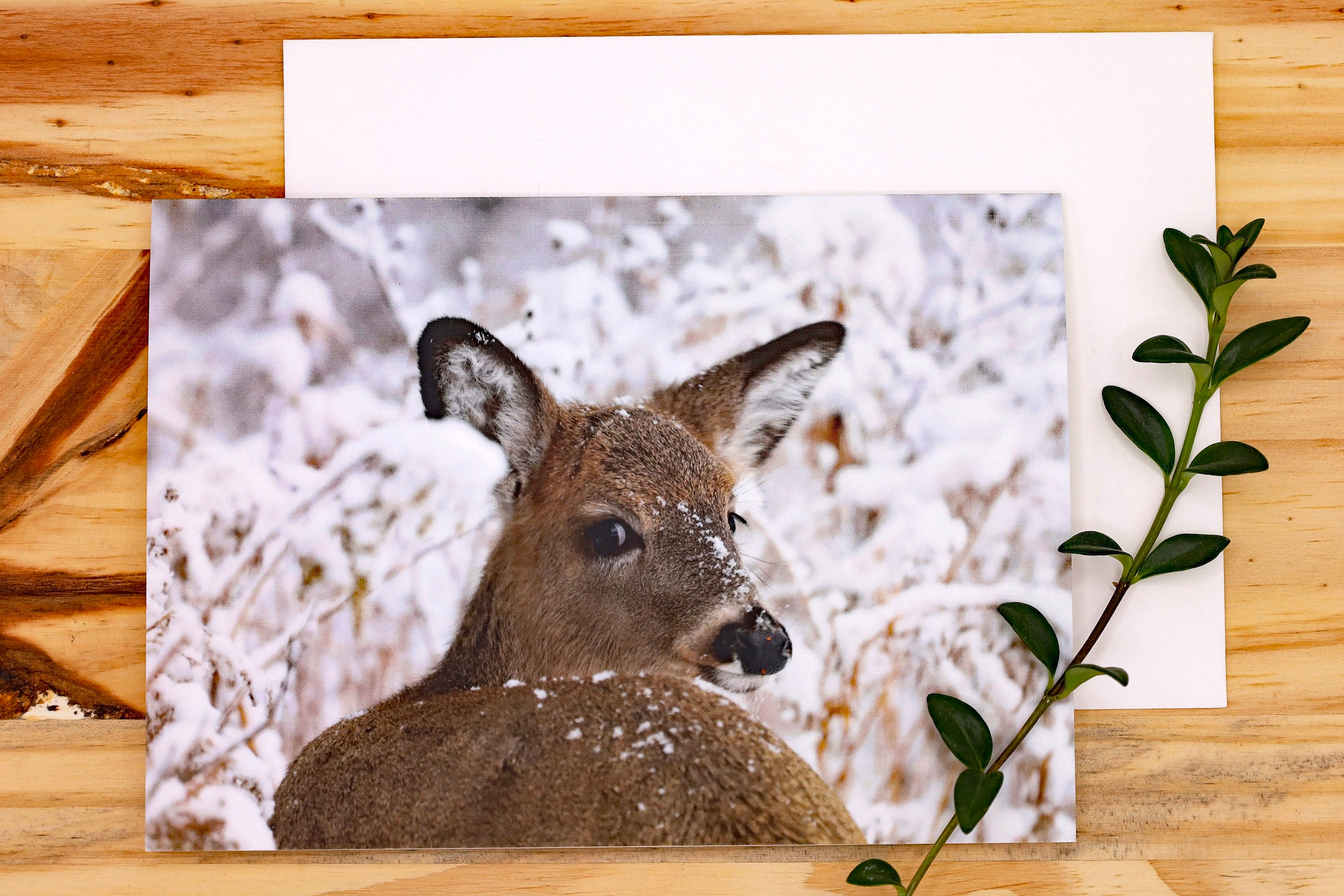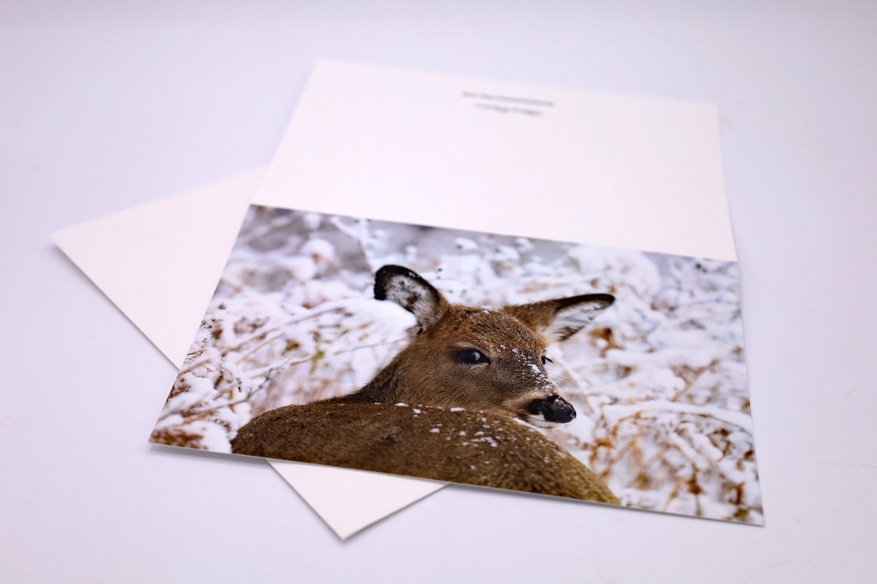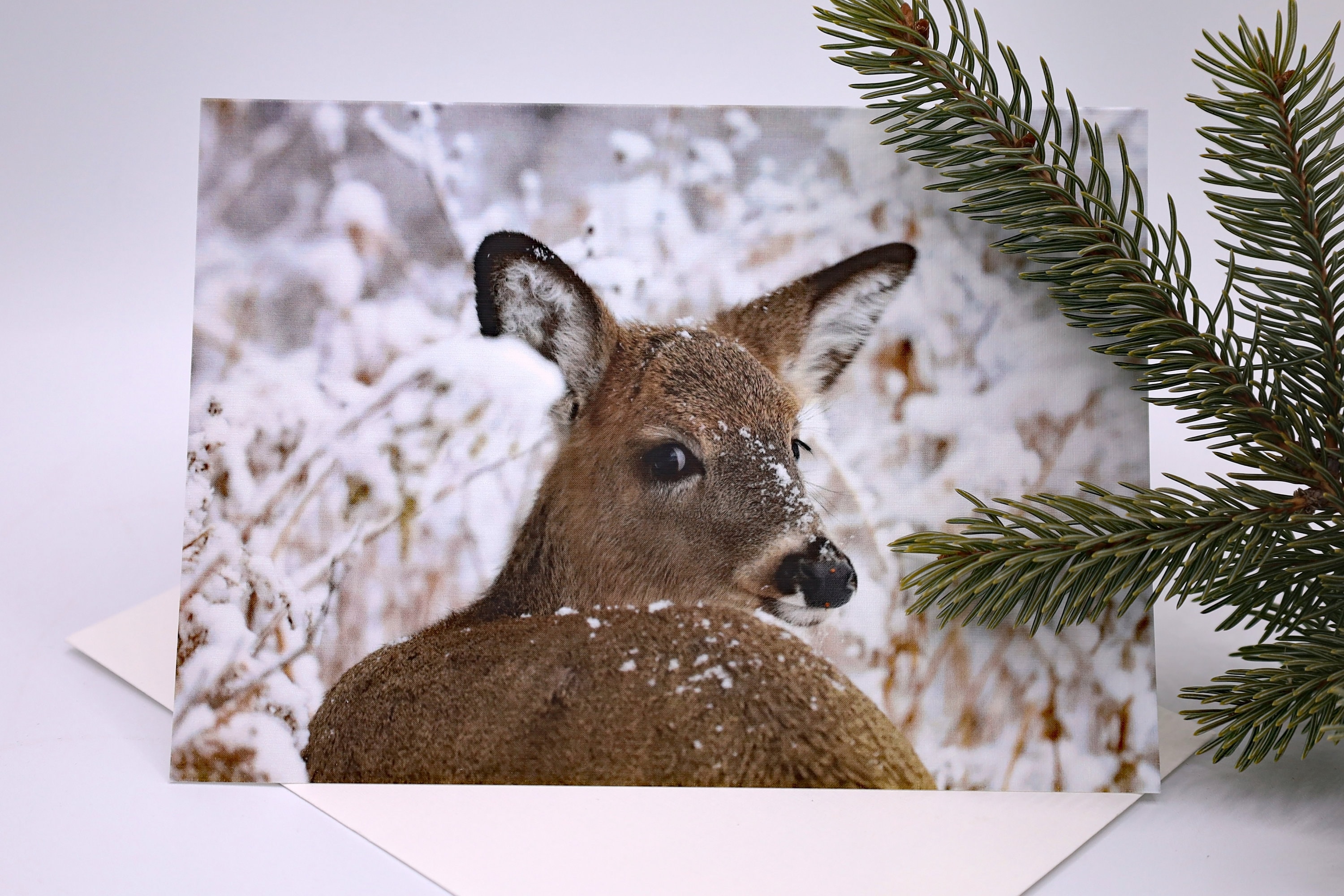 <White-tailed Deer in a winter wonderland> greeting card.